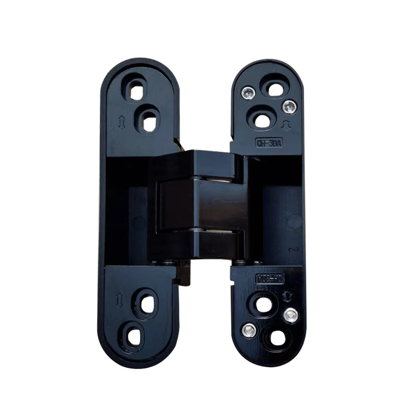 QH-3DA二維可調銅鋅合金黑色隱形鉸鏈:承重100kg,適用于帶防撬邊的各種高端門類。